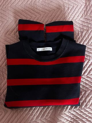 Jersey de Stradivarius con un diseño de rayas clásico y llamativo. - Diseño de rayas horizontales. - Cuello redondo. - Manga larga.