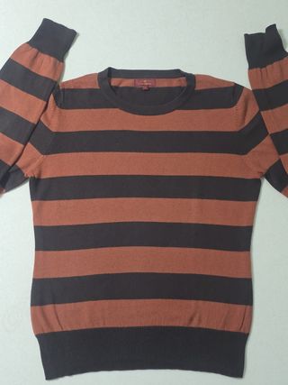 Jersey de punto fino con un diseño de rayas horizontales.Es de color marrón y teja, está en perfecto estado ✅ Medidas aprox: sisa a sisa 46 cm / largo 57 cm. VISITA MI PERFIL TENGO MÁS MODA. HAGO ENVÍOS