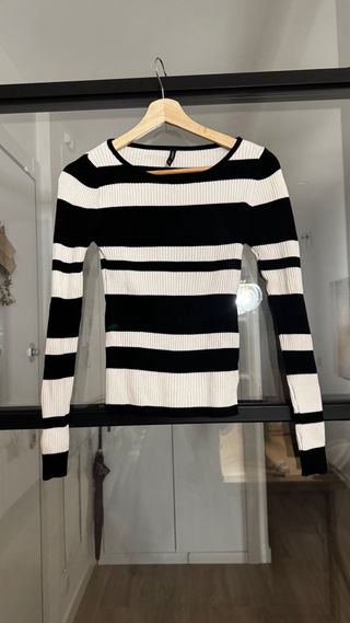 Jersey de rayas blancas y negras, en buen estado. - Diseño de rayas horizontales. - Manga larga.