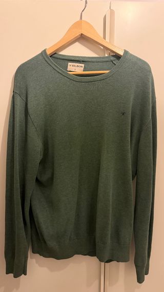 Jersey de punto fino de la marca Silbon. - Cuello redondo. - Manga larga. - Logo discreto bordado en el pecho.
