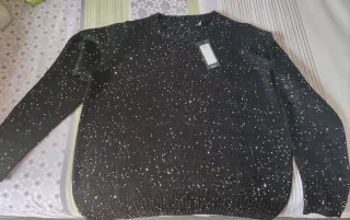 Jersey de punto con un diseño moderno y detalles brillantes. - Tejido de punto con textura. - Adornado con pequeñas lentejuelas. - Mangas largas y cuello redondo. - Talla S/M.