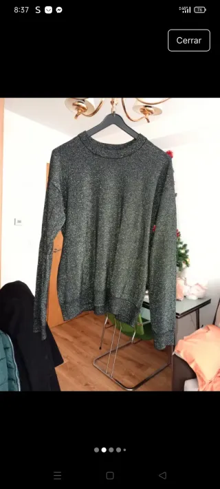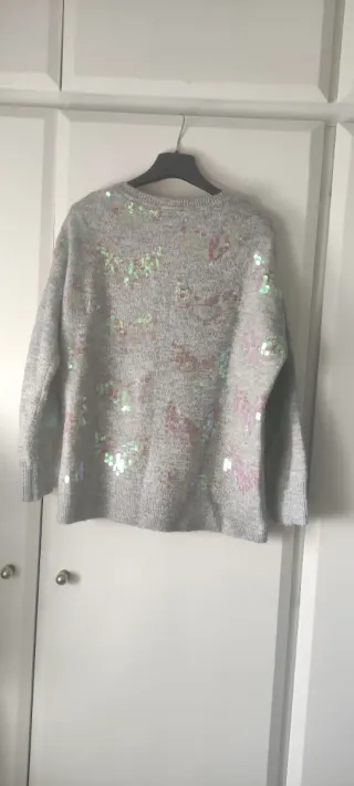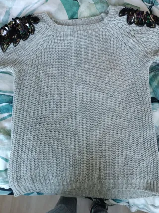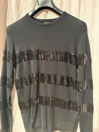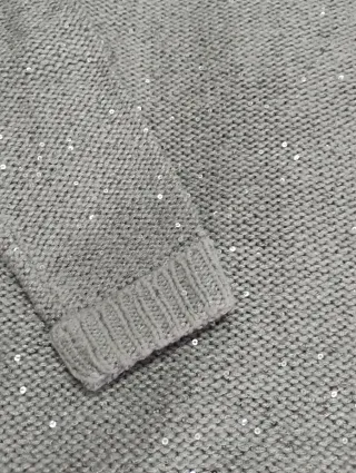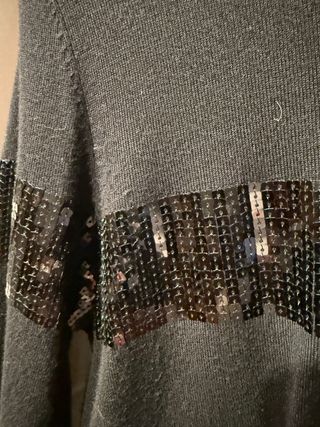 Precioso jersey de Zara en color gris, talla S. Es de punto suave y tiene detalles de lentejuelas negras. - Acabado impecable. - Perfecto para cualquier ocasión. Está nuevo.