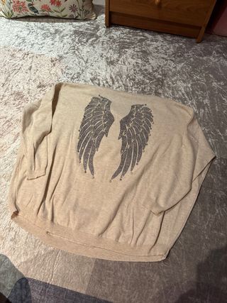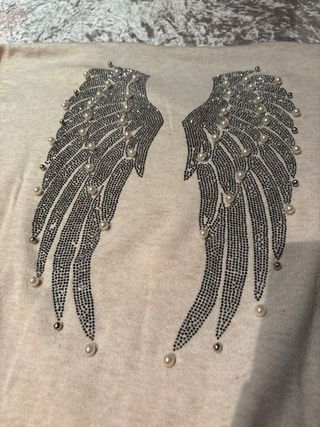 Jersey de punto con un diseño de alas en la espalda, adornado con lentejuelas y perlas. - Diseño de alas en la espalda. - Detalle de lentejuelas y perlas. - Tejido de punto suave. - Ideal para primavera