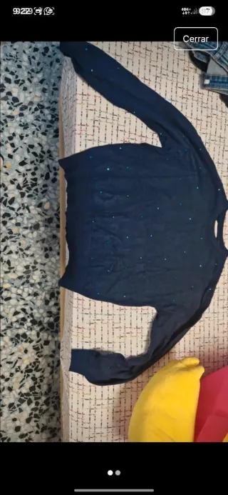 Vestido tipo jersey con un diseño de lentejuelas en la parte superior. - Diseño de lentejuelas en forma geométrica. - Manga larga. - Cuello redondo. Pone talla S pero sería M Nunca usado