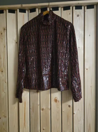 Jersey de manga larga con un diseño brillante de lentejuelas. - Cobertura completa de lentejuelas. - Cuello redondo. - Manga larga.