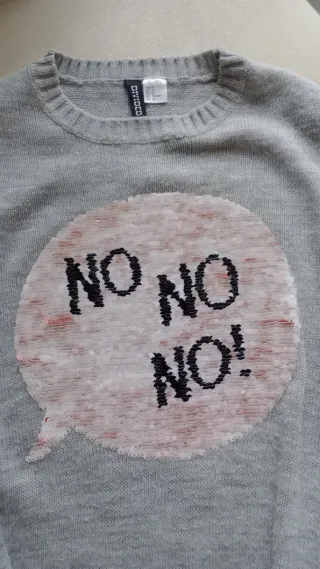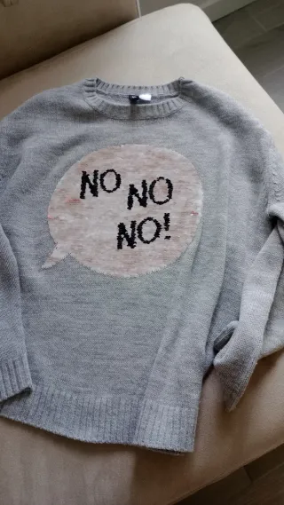 Jersey de punto gris con un divertido detalle de lentejuelas y mensaje. - Diseño de burbuja de diálogo con texto. - Lentejuelas reversibles.