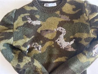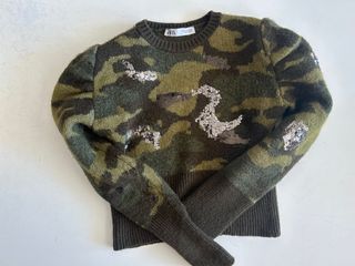 Jersey camuflaje y lentejuelas Zara Manga abullonada Talla S