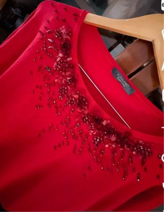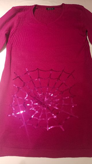 Jersey de manga larga con lentejuelas. - Diseño llamativo y brillante. - Tejido suave y cómodo. - Talla S/M. - Las lentejuelas son grandes,algo ralladas, es de lana.