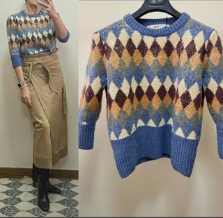 Jersey de punto Zara con un diseño de rombos y lentejuelas. - Manga abullonada. - Puños y bajo de canalé. - Lentejuela transparente que no se despega -Nuevo no negociable