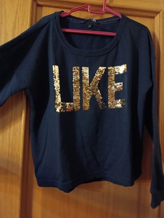 Jersey negro con la palabra LIKE en lentejuelas doradas. - Diseño moderno y llamativo. - Lentejuelas doradas multiposición con cambio a color negro. - Manga larga. - Tejido suave y cómodo. Posibilidad de entrega en mano en Madrid en zona Plaza Castilla o UAM.