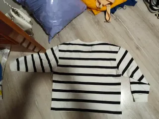 Precioso jersey con un diseño llamativo. - Detalle de lentejuelas plateadas. - Ribete blanco en el cuello.