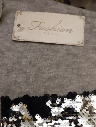 Jersey elegante con etiqueta Fashion Made in Italy. - Diseño con lentejuelas en la parte inferior. - Tejido suave y cómodo.