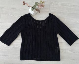 Jersey negro calado de Massimo Dutti. Lleva corchetes para sujetar el tirante del sujetador y que no se vea. Talla S. Impecable.