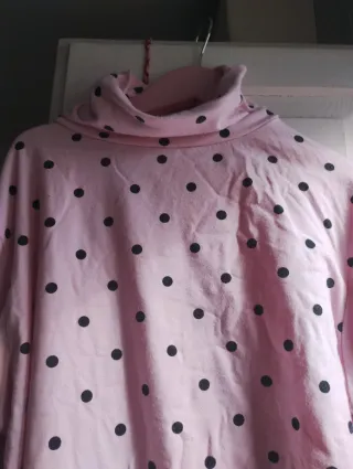 Jersey de manga larga con cuello alto y estampado de topos. - Diseño con cuello alto. - Estampado de puntos negros sobre fondo rosa.