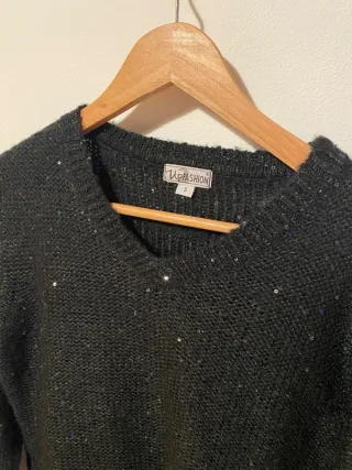 Jersey de Punto Negro con Brillos/Lentejuelas Up Fashion Talla S Material: 59% poliéster y 41% poliacrílico