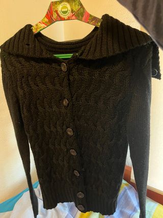 Jersey de punto grueso en color negro, con capucha integrada y cierre de botones. - Diseño moderno con detalles. - Tejido de punto. - Capucha ajustable. 📷 Desliza para ver más fotos...
