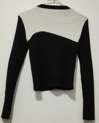 Jersey de manga larga con un diseño moderno en dos tonos. - Cuello redondo. - Tejido de canalé. - Diseño asimétrico en blanco y negro.