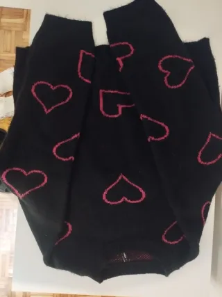 Jersey negro con un divertido estampado de corazones rosas contraste. - Diseño de corazones rosas. - Tejido suave y cómodo. - Tallaje corto