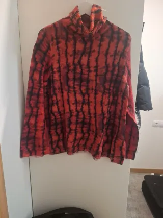 Jersey de punto de Zara con un llamativo estampado de rayas verticales en rojo y negro tipo difuminado.El cuello alto le da un toque moderno y elegante. - Diseño de rayas verticales. - Cuello alto. - Tejido suave y confortable.