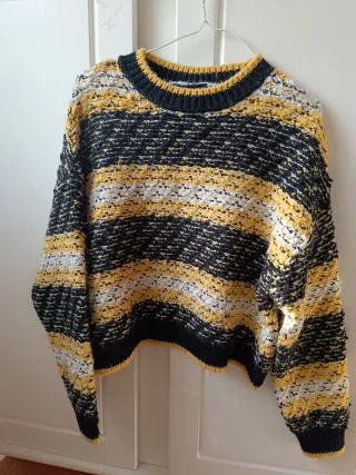 Jersey de punto con un diseño de rayas llamativo. Es una prenda cómoda y con textura. - Diseño de rayas horizontales. - Cuello redondo. - Puños y bajo elásticos.