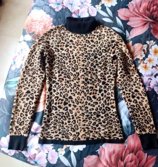 Jersey de cuello alto con estampado de leopardo. En perfecto estado, como nuevo. - Diseño de manga larga. - Puños y cuello en contraste negro. - Elástico, medidas 60 largo y 41 ancho pecho