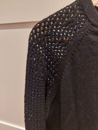 Jersey Zara negro con lentejuelas t L en muy buen estado. La talla equivale a una 44 /46 porque talla grande, incluso una 48 porque es muy amplio Parte trasera cruzado.