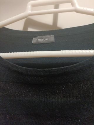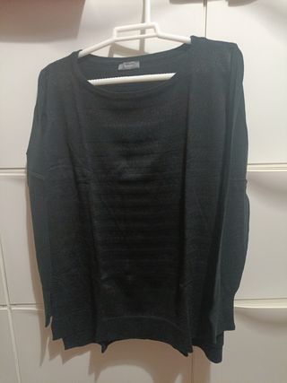 jersey negro de punto fino, con rallas brillantes. talla única, válida hasta 40/42