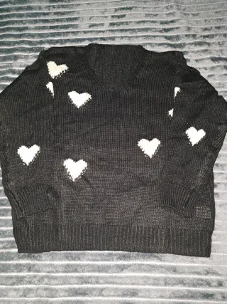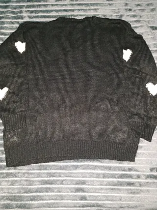 Jersey de punto con un diseño de corazones blancos. - Cuello en V. - Manga larga. - Tejido suave y cómodo.