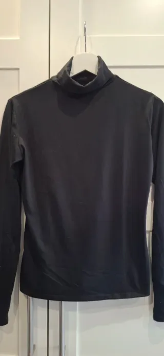 Jersey negro fino, ligero brillo, gasa abajo, sin uso, talla sM
