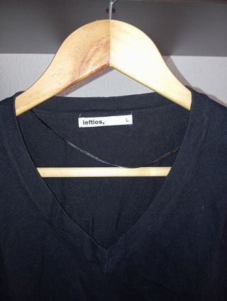 Suéter negro de pico Lefties, talla L. Es un básico perfecto para cualquier armario. - Cuello en pico. - Manga larga. - Tejido suave.