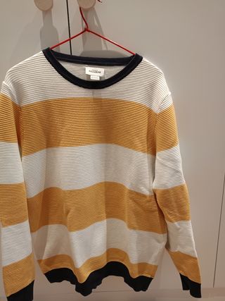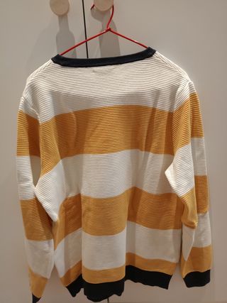 Jersey de manga larga con un diseño de rayas horizontales. - Diseño de rayas. - Manga larga. - Cuello redondo. -Precio en tienda 29,99€. -Nuevo con etiqueta. -100% Poliéster.