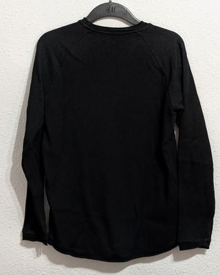 Jersey de Bershka en color negro con tejido acanalado. Se puede ver en persona sin compromiso. Cualquier duda o consulta no duden en ponerse en contacto. - Manga larga. - Cuello redondo. - Corte moderno.