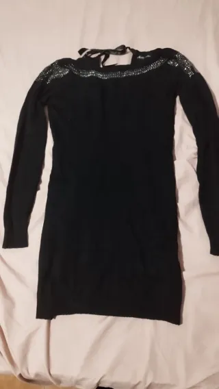 Elegante jersey negro con un diseño de pedrería brillante. - Manga larga. - Cuello redondo. - Adornado con múltiples pedrerías. - Al contener elastano , para M también podría ir bien.