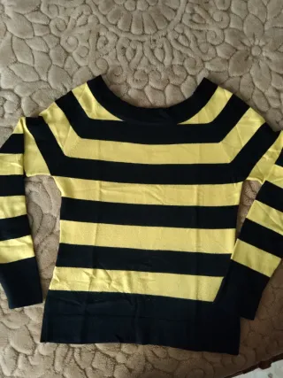 Jersey de punto con diseño de rayas negras y amarillas horizontales, es una talla M. Tejido suave y cómodo. Cualquier duda preguntar. Envío como más convenga al comprador.