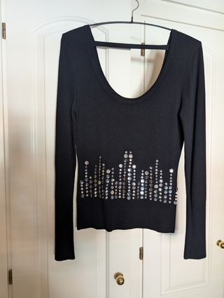 Jersey muy suave, negro con bordado en dorado y adornado con perlas. Sin estrenar.