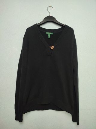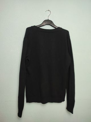 Jersey de punto de color negro y manga larga talla M. Tiene un cuello pico con cierre de tres botones. Es una prenda cómoda y de buen gusto. - Cuello pico - Tres botones - Manga larga