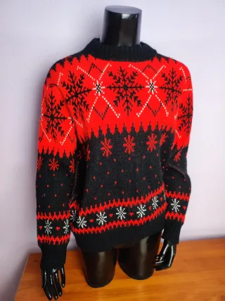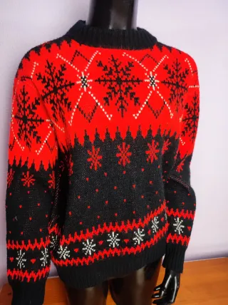 Jersey Navidad Vintage Copos Nieve Rojo Negro