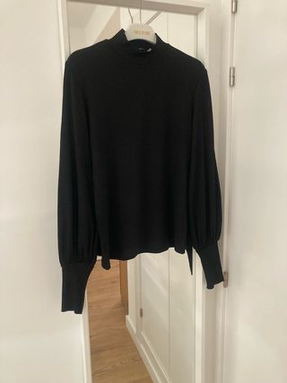 Jersey de punto fino con un diseño elegante y moderno. - Cuello alto. - Mangas largas abullonadas con puño. - Tejido acanalado.