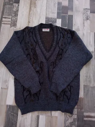 Jersey de punto en color azul y negro. Presenta un diseño con detalles en contraste. - Cuello en pico - Talla L - Manga larga. - Tejido de punto.
