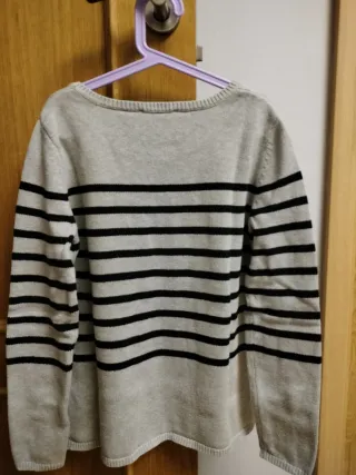 Jersey de rayas con cuello vuelto tipo barco - Diseño de rayas horizontales. - Medidas de sisa a sisa 42 cm. y 53 de largo