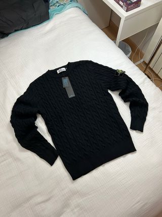 Jersey de punto trenzado de Stone Island. - Diseño clásico con cuello redondo. - Detalle del parche icónico en la manga. - Tejido de alta calidad.