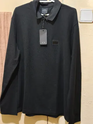 Armani Exchange Jersey Cuello Solapa Negro Nuevo
