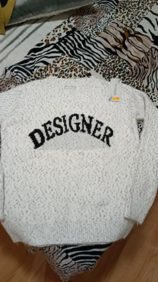 Jersey de señora con un diseño moderno y llamativo. - Tejido suave y confortable. - Detalle de letras DESIGNER en contraste. - Diseño jaspeado en blanco y negro.
