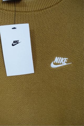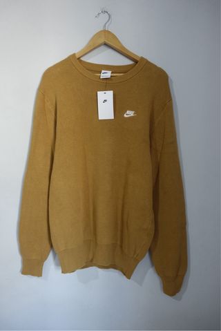 Jersey de punto de la marca Nike, en color amarillo mostaza. Viene con su etiqueta original. - Diseño de cuello redondo. - Logo de Nike bordado en el pecho.
