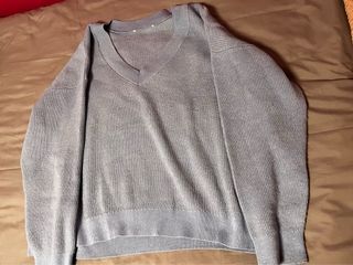 Jersey de punto con cuello en pico y oversized, aunque ponga M/L es bastante grande y cómodo yo diría que es una XL más bien. - Tejido suave y agradable. - Diseño moderno y versátil.