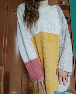 Vestido de punto tipo jersey con cuello alto. Oversize Tejido suave y cómodo Sin estrenar, tiene la etiqueta Cualquier duda escríbeme!
