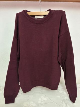 Jersey de punto grueso en color burdeos. Su corte oversize lo hace muy cómodo y versátil. - Tejido suave y abrigado. - Cuello redondo. - Manga larga. - Nose ha gastado nunca. - En perfecto estado.