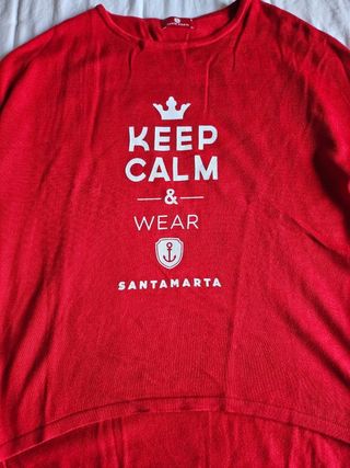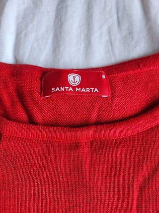 Precioso jersey rojo de la marca Santa Marta, con manga francesa y mensaje. Talla S, es oversize. Como nuevo.