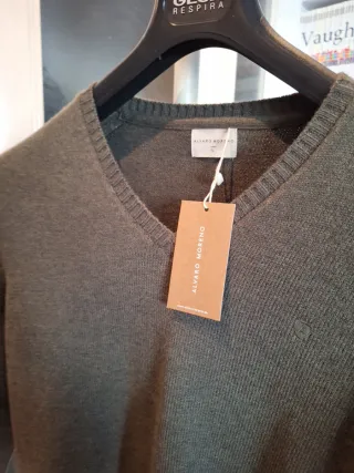 Jersey de punto fino, color verde kaki, cuello cremallera de Mango y sudadera con capucha, color azul y beige de Jack & Jones. Sin usar, están nuevos. No hago envíos.