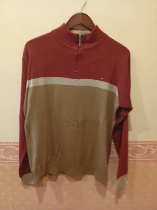 Jersey Tommy Hilfiger M Beige/Rojo Cremallera